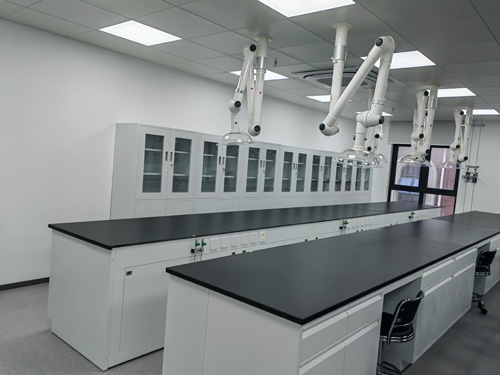 1.材 料:臺面板使用12.7mm厚威盛亞實芯理化檢驗板,邊沿加厚為25.4mm,耐蝕不銹鋼、防水膠、耐持續高溫耐腐、耐抗撞擊、相同形、無害、易保養、并兼有充分的載重使用性能。